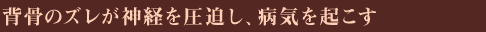 脊髄のわん曲や圧迫は、各神経系統の調整を妨げ、各臓器の賦活作用が不十分となって、悪い症状となってあらわれます。脊椎を正常に保つこと、これがすべての健康の条件と言えます。
